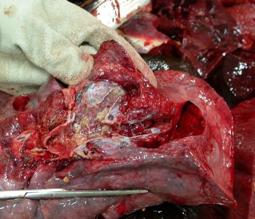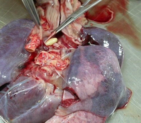 - SE APRECIA CONTENIDO ALIMENTICIO PROCEDENTE DEL ESTOMAGO EN UN CADAVER QUE FALLECIO POR REGURGITACION DE CONTENIDO ALIMENTICIO A LA VIA RESPIRATORIA.