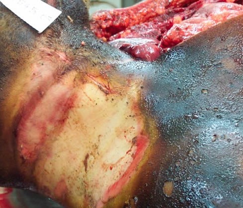 - SURCO DE ESTRANGULACIÓN: CON EL SURCO DE DIRECCION HORIZONTAL UBICADO POR DEBAJO DEL CARTILAGO TIROIDES, EN ESTE CASO SE TRATO DE SIMULAR UNA MUERTE POR QUEMADURA.