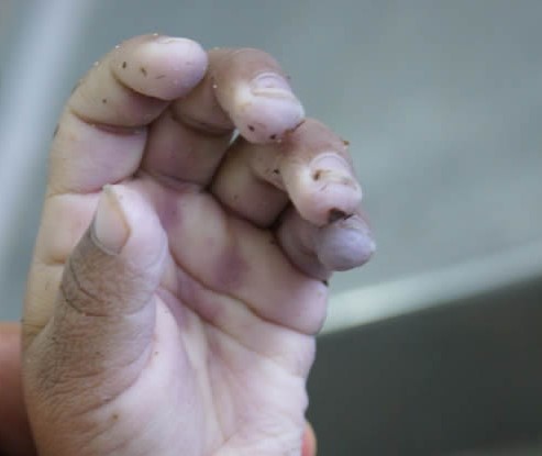 - MACERACION DE LAS MANOS (SIGNO DE LA LAVANDERA) EN UN NIÑO POR MUERTE POR SUMERSION EN EL RIO.